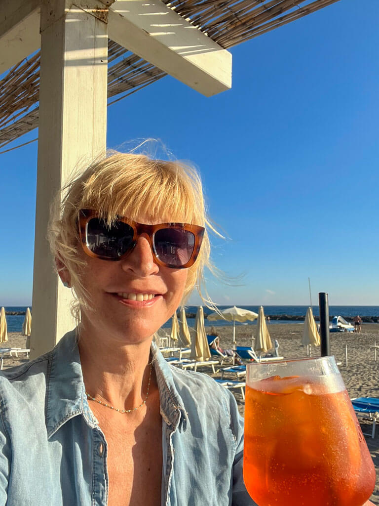 Zřejmě měl radost, že není ve vodě sám a našel aspoň na chvíli zpřízněnou koupací duši! Přestože na první pohled musel poznat, že nejsem místní, slunce mi vyšisovalo vlasy do nejvíc cool odstínu podzimu 2025 lemon platinum 😊 (jsem se právě dočetla), ale především když jsem promluvila, i když konverzační italštinu zvládám už na výbornou 😊.