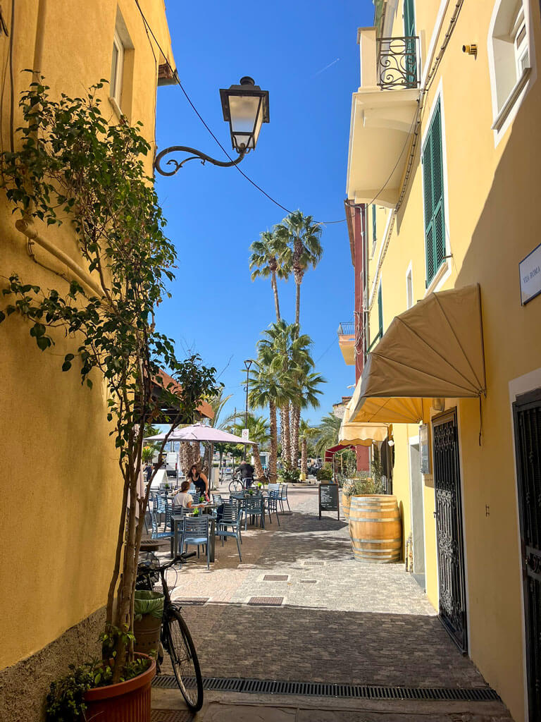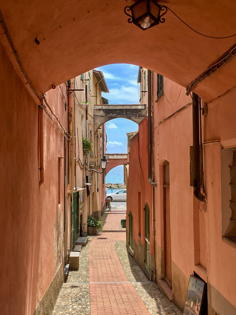 Seběhla jsem do Santo Stefano al Mare, které protíná malebná úzká ulička plná barevných domků místy propojených arkýři, kde jako by se zastavil čas a která kopíruje křivku moře, které na vás vykukuje z miniprůchodů mezi domky. V poledne uvnitř města nebyl nikdo. Tuhle krásnou uličku jsem už asi tisíckrát nafotila a vyrobila z ní několik reelů, které, po zásluze (myslím hlavně krás toho místa 😊) nasbíraly spousty lajků 😊.